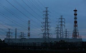 FILE PHOTO: Electric power transmission lines leading to Tokyo Electric Power Co.’s (TEPCO) Kohoku Substation are seen in Yokohama, south of Tokyo, September 15, 2014. REUTERS/Yuya Shino/File Photo