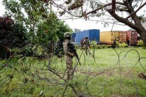 M23 rebels at the Grande Barrier border amid clashes with
