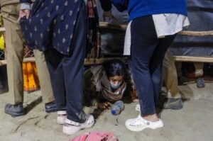 Una mujer se arrastra bajo una valla, tras una estampida mortal antes del segundo “Shahi Snan” (baño real), en el “Maha Kumbh Mela” o Gran Festival de la Jarra en Prayagraj, antes conocido como Allahabad, India 29 de enero de 2025. REUTERS/Adnan Abidi