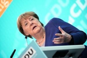 ARCHIV: Die ehemalige deutsche Bundeskanzlerin Angela Merkel spricht während eines Neujahrsempfangs der Christlich Demokratischen Union (CDU) in Düsseldorf, Deutschland, 18. Januar 2025. REUTERS/Jana Rodenbusch