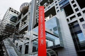 A sign of Fuji Media Holdings is seen at the company’s headquarters building in Odaiba district in Tokyo, Japan January 27, 2025. REUTERS/Issei Kato/File Photo