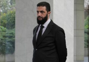 FILE PHOTO: Syria’s de facto leader Ahmed al-Sharaa, also known as Abu Mohammed al-Golani waits to welcome the senior Ukrainian delegation led by Ukrainian Foreign Minister Andrii Sybiha, after the ousting of Syria’s Bashar al-Assad, in Damascus, Syria, December 30, 2024. REUTERS/Khalil Ashawi/File Photo