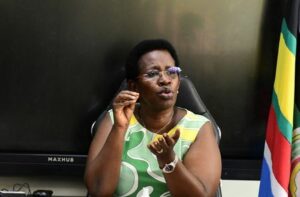 Uganda’s Permanent Secretary in the Ministry of Health Dr. Diana Atwine gestures during a press conference on the outbreak of Ebola virus in Uganda’s capital, in Kampala, Uganda January 30, 2025. REUTERS/Abubaker Lubowa