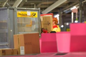 ARCHIV: Ein Mitarbeiter arbeitet im Distributionszentrum des deutschen Post- und Logistikkonzerns Deutsche Post DHL in Ottendorf-Okrilla bei Dresden, Deutschland, 15. Dezember 2022. REUTERS/Matthias Rietschel