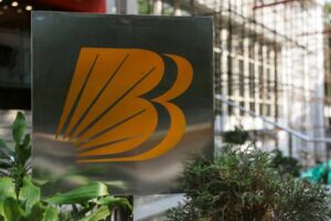FILE PHOTO: Logo of Bank of Baroda is seen on a stand outside their branch office in New Delhi, India, June 20, 2023. REUTERS/Anushree Fadnavis/File Photo