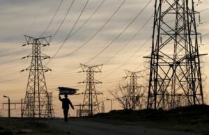 FILE PHOTO: A woman carries fire wood on her head as she walks below state power utility ESKOM’s elecricity pylons in Soweto, South Africa, August 8, 2016. REUTERS/Siphiwe Sibeko/File Photo