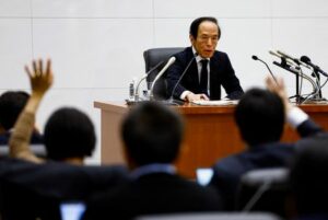 Bank of Japan (BOJ) Governor Kazuo Ueda attends a press