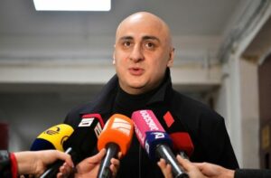 ARCHIV: Nika Melia, ein Anführer der Coalition for Change, spricht mit den Medien in einem Wahllokal während der Parlamentswahlen in Tiflis, Georgien, 26. Oktober 2024. REUTERS/Zurab Javakhadze