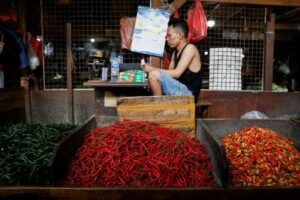 FILE PHOTO: A vendor selling chilies waits for customers at a traditional market, in Jakarta, Indonesia October 1, 2024. REUTERS/Willy Kurniawan/File Photo
