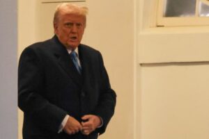 FILE PHOTO: U.S. President Donald Trump walks as he departs the White House, in Washington, U.S., January 31, 2025. REUTERS/Carlos Barria/File Photo