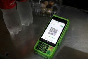 FOTO DE ARCHIVO: Un código QR del modo de pago electrónico instantáneo conocido como PIX, se ve en una máquina de pago en una tienda en Río de Janeiro, Brasil 1 de abril de 2024. REUTERS/Pilar Olivares/Foto de archivo