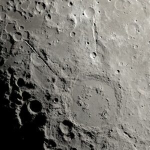 Dos grandes cañones en la Luna que irradian desde la cuenca de impacto de Schroedinger cerca del polo sur lunar en el lado lejano lunar se ven en esta imagen sin fecha utilizando datos obtenidos por la nave espacial robótica Lunar Reconnaissance Orbiter de la NASA. NASA/SVS/Ernie T. Wright/Handout via REUTERS