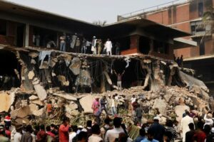 Protesters and observers gather to see the demolished Dhanmondi-32 residence