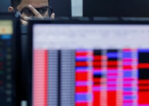 FILE PHOTO: A broker reacts as he trades at his computer terminal inside a stock brokerage firm in Mumbai, India, July 23, 2024. REUTERS/Francis Mascarenhas/File Photo