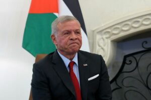 FILE PHOTO: Jordan’s King Abdullah talks with Cyprus’ President Nikos Christodoulides (not pictured) during a trilateral summit between Greece, Cyprus and Jordan at the Presidential Palace in Nicosia, Cyprus, November 27, 2024. REUTERS/Yiannis Kourtoglou/Pool/File Photo