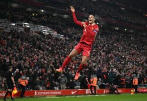 Soccer Football – Carabao Cup – Semi Final – Second Leg – Liverpool v Tottenham Hotspur – Anfield, Liverpool, Britain – February 6, 2025 Liverpool’s Virgil van Dijk celebrates scoring their fourth goal REUTERS/Dylan Martinez