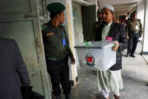 An official brings ballot box for counting casted votes after voting is timed out at a polling station, during the 12th general election in Dhaka, Bangladesh, January 7, 2024. REUTERS/Mohammad Ponir Hossain/ File Photo