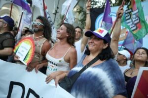 La presidenta de la Federación Argentina LGBT y titular del Instituto contra la Discriminación en la Defensoría del Pueblo de Buenos Aires, María Rachid, marcha en apoyo de la comunidad LGBT para protestar contra las declaraciones del presidente de Argentina, Javier Milei, en el Foro Económico de Davos, donde asoció la homosexualidad con la pedofilia, en Buenos Aires, Argentina, el 1 de febrero de 2025. REUTERS/Cristina Sille