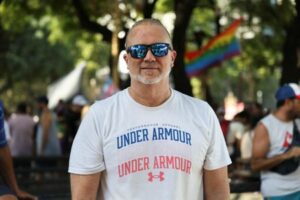 El abogado constitucionalista Andrés Gil Domínguez asiste a la marcha en apoyo a la comunidad LGBT para protestar contra la declaración del presidente Javier Milei en el Foro Económico de Davos, donde asoció la homosexualidad con la pedofilia, en Buenos Aires, Argentina, el 1 de febrero de 2025. REUTERS/Cristina Sille