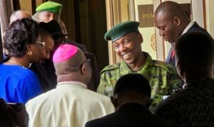 Willy Ngoma, the spokesman for the M23 rebel group, welcomes representatives from Congo’s Catholic Church for a meeting, following recent clashes between the Rwandan-backed M23 rebels, who seized Goma last month, and the Armed Forces of the Democratic Republic of the Congo (FARDC), in Goma, Democratic Republic of the Congo February 12, 2025. REUTERS/Fiston Mahamba