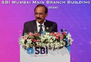 FILE PHOTO: Challa Sreenivasulu Setty, Chairperson of the State Bank of India speaks during an event in Mumbai, India, November 18, 2024. REUTERS/Francis Mascarenhas/File Photo