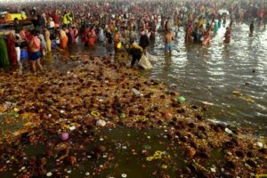 A man collects coconuts thrown in as offerings by devotees at Sangam, the confluence of the Ganges and Yamuna rivers with the mythical invisible Saraswati river, to mark Maghi Purnima, one of the auspicious days during the “Maha Kumbh Mela”, or the Great Pitcher Festival, in Prayagraj, India, February 12, 2025. REUTERS/Ritesh Shukla