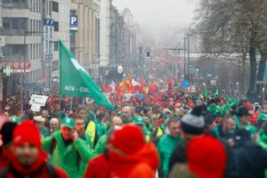 Trabajadores y miembros de sindicatos llenan la calle durante una huelga nacional para exigir servicios públicos más sólidos en Bruselas, Bélgica, 13 de febrero de 2025. REUTERS/Stephanie Lecocq
