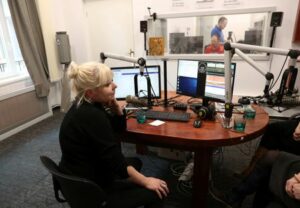 An employee of the Hungarian radio station Klubradio works at its headquarters in Budapest, Hungary, February 6, 2025. REUTERS/Bernadett Szabo