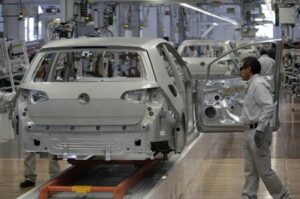 FOTO DE ARCHIVO: Trabajadores operan la línea de montaje del Golf 7 en la planta de Volkswagen en Puebla, México. 14 de enero 2014. REUTERS/Imelda Medina/Archivo