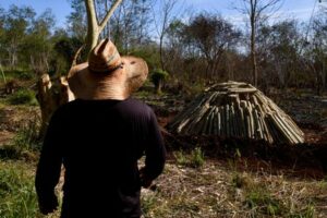 Andy Ayala se prepara para quemar leña para producir carbón vegetal en una carbonería tradicional en San Nicolás de Bari, Cuba. 18 de febrero de 2025. REUTERS/Norlys Perez