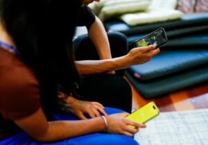 ARCHIV: Zwei Schüler posieren mit ihren Handys, auf denen Social-Media-Anwendungen zu sehen sind, in Melbourne, Australien, 28. November 2024. REUTERS/Asanka Brendon Ratnayake/File Photo