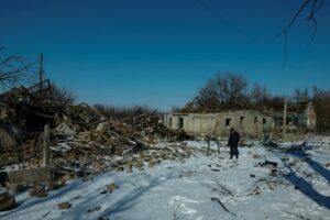 Former head of local community Mykola Havrylov walks next to a house destroyed by a recent Russian air strike in the village of Novopavlivka, amid Russia’s attack on Ukraine, in Dnipropetrovsk region, Ukraine February 18, 2025. REUTERS/Valentyn Ogirenko