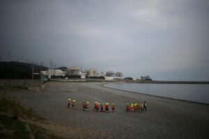 FILE PHOTO: Children visit a seashore as Wolseong Nuclear Power Plant is seen in the background at Naa-ri village in Gyeongju, South Korea, August 23, 2022. REUTERS/Kim Hong-Ji/File Photo