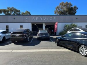 Foto de archivo de un auto de Tesla en un centro de servicio técnico en San Diego, California