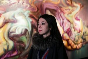 Syrian artist Sara Shamma attends an interview with Reuters during her retrospective exhibition, ‘Sara Shamma: Echoes of 12 years’ at Damascus National Museum, in Damascus, Syria January 29, 2025. REUTERS/Khalil Ashawi