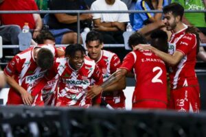 Foto de archivo de jugadores del Necaxa festejando un gol. Lumen Field, Seattle, Washington, EEUU. 4 de agosto de 2024.