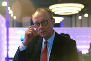 FILE PHOTO: Conservative candidate for chancellor and Christian Democratic Union (CDU) party leader Friedrich Merz arrives to attend the ARD TV live debate ‘Wahlarena’ in Berlin, Germany, February 17, 2025. REUTERS/Fabrizio Bensch/File Photo