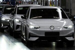 FILE PHOTO: Volkswagen ID.7 electric cars are seen at the Volkswagen (VW) electric fleet lead plant in Emden, Germany, February 18, 2025. REUTERS/Carmen Jaspersen/File Photo