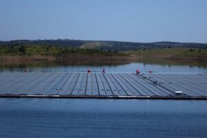 FILE PHOTO: A worker walks during the installation of EDP’s (Energias de Portugal) largest floating solar farm on a dam in Europe, on the surface of Alqueva dam, in Moura, Portugal, May 5, 2022. REUTERS/Pedro Nunes/File Photo