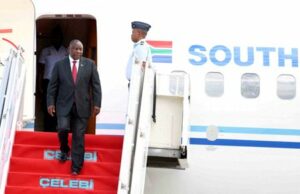 FILE PHOTO: South African President Cyril Ramaphosa looks on during his arrival ahead of the G20 summit in New Delhi, India, September 8, 2023. Katlholo Maifadi/DIRCO/Handout via REUTERS/ File Photo