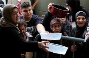 FILE PHOTO: Displaced people queue for food cooked by a charity kitchen, amid ongoing hostilities between Hezbollah and Israeli forces, in downtown Beirut, Lebanon October 10, 2024. REUTERS/Mohamed Azakir/File Photo