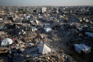 FILE PHOTO: The rubble of destroyed buildings is seen, amid a ceasefire between Israel and Hamas, at Jabalia refugee camp, northern Gaza Strip, February 26, 2025. REUTERS/Mahmoud Issa/File Photo