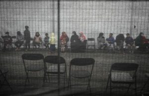FILE PHOTO: Afghan refugees queue outside a distribution and donation center at Liberty Village on Joint Base McGuire-Dix-Lakehurst in New Jersey, U.S., December 2, 2021. REUTERS/Barbara Davidson/Pool/File Photo
