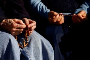 FOTO DE ARCHIVO: Monjas sostienen rosarios mientras rezan cerca de