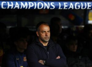 Fútbol – Liga de Campeones – Octavos de final – Partido de vuelta – FC Barcelona vs Benfica – Estadi Olimpic Lluis Companys, Barcelona, España – 11 de marzo de 2025. El entrenador del FC Barcelona, Hansi Flick, durante el partido. REUTERS/Albert Gea