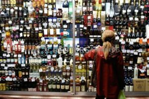 Foto de archivo – Una mujer mira bebidas en la vidriera de un comercio de Buenos Aires, Argentina. Abr 12, 2022. REUTERS/Mariana Nedelcu