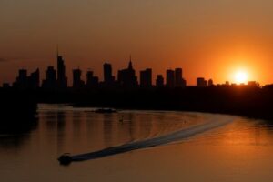 Sunset is seen over skyline in Warsaw March 14, 2025 March 14, 2025 FILE PHOTO: A view of sunset over skyline in Warsaw, Poland April 27, 2024. REUTERS/Kuba Stezycki/File photo