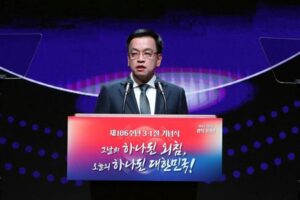 FILE PHOTO: South Korean acting President Choi Sang-mok speaks during the 106th Independence Movement Day ceremony at Soongeui Women’s University on March 01, 2025 in Seoul, South Korea. Chung Sung-Jun/Pool via REUTERS/File Photo