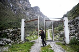 Teodorico Caldua, guardian of the entrance to the snow-capped mountain Palcaraju, opens a gate to an area central to local farmer Saul Luciano Lliuya’s lawsuit against German energy utility RWE whose emissions Lliuya says have contributed to the melting of Andean glaciers, in Huaraz, Peru March 3, 2025. REUTERS/Angela Ponce