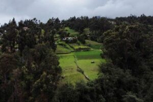 A drone view shows the Andean village of Llupa, home of local farmer Saul Luciano Lliuya who is pursuing a lawsuit against German energy utility RWE whose emissions Lliuya says have contributed to the melting of Andean glaciers, in Huaraz, Peru March 1, 2025. REUTERS/Angela Ponce
